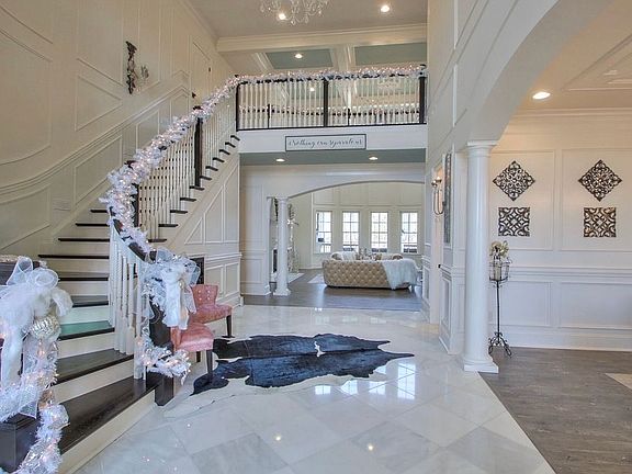Scenic custom built estate property, 1 ac stocked lake with boat dock, beach ,year round creek, fenced pasture for horses, extensive trim & ceiling treatments. Master has large sitting room with fireplace jacuzzi tub & accesses the covered deck w/ lake view. Theatre room, mini kit/wet bar in bonus, walk in pantry, walk in storage. All bedrooms w/huge walk-in closets. Full gym, spa , Renovated cabin and more