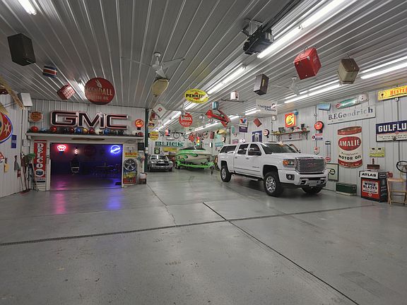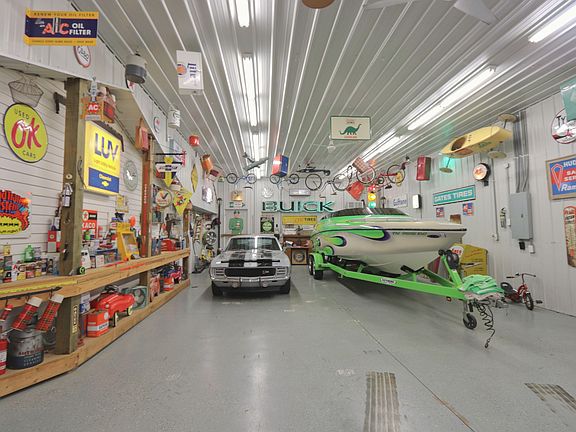 Looking for an epic shop in the country? The garage is over 6000sqft with gas central heat throughout and drains in floor, the lift and the air compressor remain, and it's 80ft in depth with two 10ft doors on the front, an office, a half bath, and a rec space they've used as a billiard room! There's a side door entry that's fitting for a lawnmower or storage space. Garage doors have commercial openers. Has a two car carport as well! The home features a covered back deck with a custom bar and stone fire pit, tile throughout the wet areas with tile countertops in the kitchen and bathrooms, a gas fireplace in the living room, wood beams on the ceiling with custom wood trim and baseboards. Sitting on over an acre and just minutes off of the Linwood exit on I-40! Come check it out!