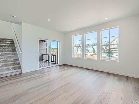 Anticipated Completion October 2024! This gorgeous Plateau 2 story home is on a corner lot w/grass on the northern side, situated next to expansive open area and features 3 beds, 2.5 baths, great room, open kitchen, upstairs laundry, 2 car garage and full unfinished basement. Beautiful upgrades and finishes throughout including vinyl plank floors, stainless steel appliances and more. Dove Village is a new Lennar community providing the best of Colorado living. Energy efficiency seamlessly blended with luxury to make your new house a home. What some builders consider high-end upgrades, Lennar makes a standard inclusion. You will not be disappointed. This community offers single family homes for every lifestyle. Close to dining, shopping, entertainment and other amenities. Don’t wait – this community will sell out quickly! Photos and walkthrough tour model and subject to change.