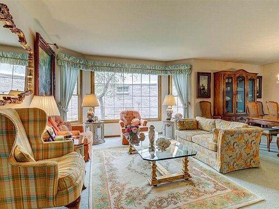 A rare opportunity for this all brick maintenance free ranch style patio home. The last sale in The Village was almost a year ago! The original owners have maintained this home beautifully with a true pride of ownership yet it's ready for some minimal updating. One of the largest floor plans in The Village backing to a lovely greenbelt and a quite location. An open floor plan with main floor guest bedroom and bathroom, study, large living/dining room, cheerful kitchen with breakfast nook overlooking the greenbelt, main floor laundry, lovely master bedroom with walk-in closet and 5 piece bath. the partial finished basement has a large living room with gas stove and a wonderful space for the workshop and additional storage. The private patio is half covered with additional decking and a water feature for summer entertaining. A wonderful neighborhood, a worry free home and a convenient location!