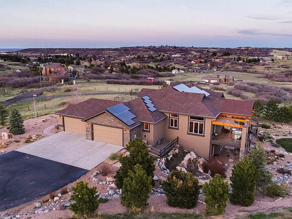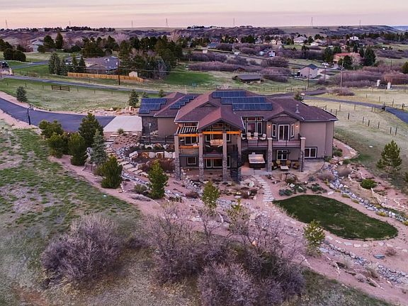 Enjoy both privacy and easy access to city living with the the peace and quiet of mountain life. Sitting on over 5 acres of gorgeous land this 4 bed, 4 bath ranch, with a fully finished walkout basement offers luxury, stunning outdoor spaces and sits just minutes from I-25 and the new Ridgegate Parkway Light Rail Station. Enjoy the start of your day in a kitchen with a gas cooktop, granite counters, double oven and stainless steel appliances. Enjoy your coffee on a cold morning in your breakfast nook and enjoy the double sided fireplace, when it?s warm or even cool go outside to your two story deck, with heaters and a stunning view of your property. The gorgeous master features a shower that you can walk in one side and out the other making it a dream place to start or end your day. Featuring a full wet bar, hidden wine cellar and even a yoga studio this home has everything you need to never want to leave, yet is so close to everything in your life you will always have the option to.