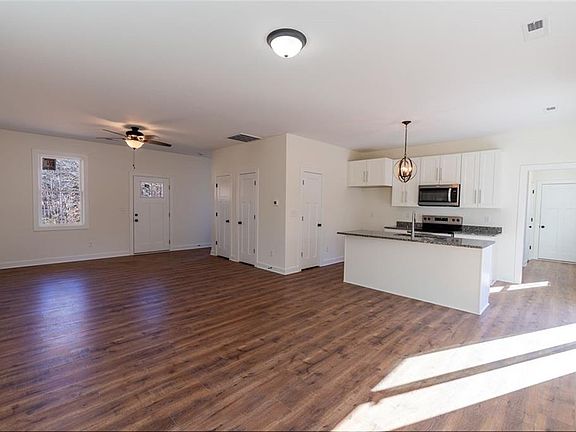 Sleek, stylish, & newly built, this modern home effortlessly blends contemporary design w/practical functionality. The spacious layout includes 3 comfortable bedrms & 2 well-appointed full baths, ensuring ample space for families or guests. Standing tall w/9-foot ceilings, the home exudes an airy, open atmosphere. The exterior showcases eye-catching vertical batten board siding, contributing to its sleek appearance. Attached 1 car garage, black vinyl thermal double-hung windows provide excellent energy efficiency, reducing utility costs while maintaining a clean, modern aesthetic. Inside, the kitchen is a true highlight, featuring high-end granite countertops that pair beautifully w/a spacious island ideal for meal prep or casual dining. A separate pantry offers add'l storage, keeping your kitchen organized & clutter-free. Wheelchair-accessible, sep. utility room, recessed lighting... every detail thoughtfully designed to offer a perfect blend of comfort, accessibility, & style.