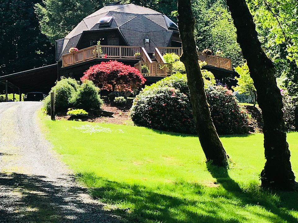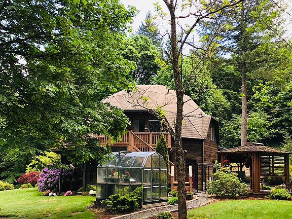 Our hill farm is the best in country living with broad views of rolling meadows and mountains. Nestled among 300 acres of forest land (Weyerhaeuser). You will never find this perfect 7+ acre setting again. This renovated 4 bedroom, 3 bath residence is an Oregon Dome home with exceptional finishes, clean classic lines, open floor plan, amazingly built structure, in turn-key condition. This unheard of unique residence has 5 separate living opportunities. Included in the 2700+ sq foot space is a completely separate 1100 sq foot ground floor Mother-in-Law Apartment with kitchen, bedroom, living room, bathroom, laundry room and attached garage. A third living opportunity is the 500 sq. studio attached to the huge shop / barn 40 x 25 with 12' doors, and three large parking areas. Also two RV spaces with full septic, water, & electrical hookups, one with a deck and one with a full covered RV space surrounded by seasonal creek and natural springs. The main house looks out to a 360 degree view of mountains and manicured park like settings. Perfect for outdoor gathering areas for friends or for a wedding venue. The shop with its nostalgic 1800's look with rusty tin and cathedral columns, could also host a reception area. Not to mention the pleasing layers of wrap around decks on the main home. Large 400 sq foot upstairs loft master bedroom with soaking tub and walk in closet. Many uses for this property, including flat acres of useable space for horses, cows, chickens, garden or farm. Large fenced in area with heated small dog home. Outbuildings for storage situated around. Offered to you by its owner Montana of Indulge Antiques. This is one of her private residences she likes to retreat to for creativity and a peaceful serene getaway, and you will feel this when you step into her personal Art Studio. This is a one of a kind, and you will never be this close to town and feel so far away.