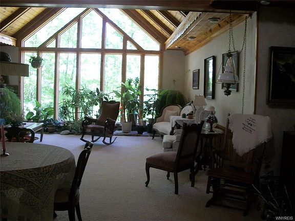 Custom Built Contemporary Home situated on 55 acres with pond has so much to offer. 2 bedrooms 2 1/2 baths . Large open 20'X30' living dining room with catherdal ceiling featuring a window wall and interior terarium with fountain. Eat in kitchen has free standing propane stove., a seperate sewing or craft room. Hot water baseboard heat has 6 zones. Loft , balcony can be used for extra sleeping or quite study area. Black top driveway and 2 car gagrage . Enjoy birds and wildlife from the comforts of this home.