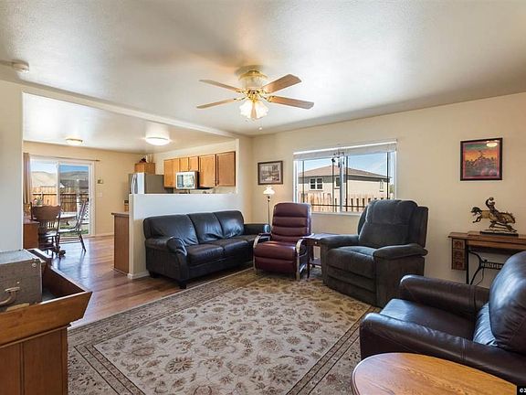Nicely updated home is ready for new owners! Features include beautiful hickory wood floors, stainless steel appliances and a remodeled master bathroom with walk-in shower, dual sinks and custom tile. Popular floorplan offers 2 bedrooms and 2 full bathrooms, with a great room concept, perfect for entertaining! The two car garage offers plenty of storage, plus RV parking on the side of the house. Enjoy the mountain views from the private backyard, which also features a storage shed and playhouse.