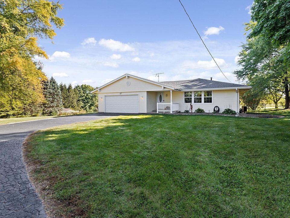 Ranch style home sitting on 5 acres zoned agriculture. Rear acreage all fenced, bring your horses or farm animals. Paths are cut and ready for ATV, UTV, and dirt bikes. Enjoy the sunrise overlooking the many pear, apple, and mature trees. Neutral and bright dcor. Open floor plan. Kitchen with abundant cabinetry, pantry with pullout shelving, tile flooring, built-in microwave, and spacious eating area. Plus a formal dining room. First floor laundry. Large Family Room with a coffered ceiling, wood burning fireplace with a gas starter, and doors out to newly stained 2-tiered deck. Master Bedroom with your own full bathroom. Main bathroom with new toilet, whirlpool tub, and tile flooring. Newly finished lower level with Rec Room, Office/Play Are. Lots of recessed lighting. Newer siding. Some newer windows. Home is extra insulated. New garage door open on home garage door. Heated garage. Roof 4 years old. Newer air conditioner. Outbuilding. Some photos have been virtually staged.