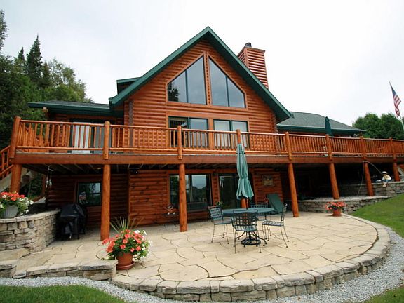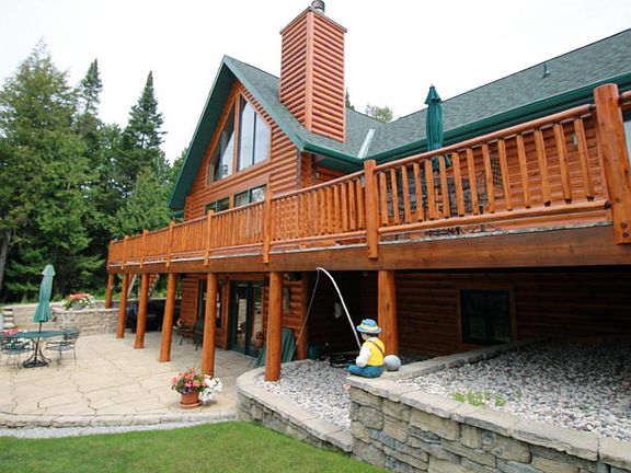The marvelous log home on 15 acres with over 200' of natural Black River frontage. From your deck you can watch the eagles at Eagle Tree or enjoy the tranquil setting from your river dock. The immaculately maintained log home offers 3 bedrooms, custom kitchen, large living room with fieldstone fireplace, dining area leading to a wrap-around deck, fully finished lower level with a great family room, office, and stone patio. The driveway leads to the river's edge providing easy access via your golf cart or atv. Also offers a 2 car garage and additional storage building.