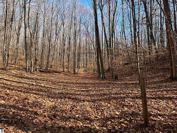 Beautifully wooded, absolutely stunning 20 acre tract of Pure Northern Michigan. Mature hardwood trees throughout. This acreage has never been logged and has lots of good, marketable timber. Scenic trails that gently wind upward to a beautiful ridge abutting Glacial Hills Natural Area, which has miles upon miles of hiking and biking trails. There is a natural building site, where an old cabin once stood, with sweeping views of the forest and valley below. Rare opportunity to own your own slice of paradise. Easement Survey & Description are in the Associated Docs.