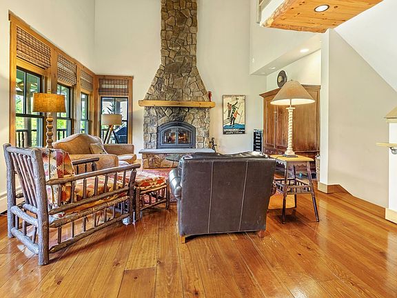 The Largest Stratton Resort Treetop Floor Plan and a location with a great ski back trail to your Unit. You've been waiting for the 4 bedroom/4 bath end unit with a lower level family room and the large corner circular covered deck, all the space you desire and need for enjoying Vermont winters with family and friends. Wood floors, fireplace with commanding stone hearth, kitchen with breakfast bar and granite countertops and multiple bedroom suites, with the primary suite privately occupying the top floor. The lower level game room/family rooms is ideal for a game of pool, movie night or watching the game. Plenty of space for apres ski. An oversized mudroom with double closets and cubbies. Out door locked ski closet on porch.Plus outdoor patio. One car detached garage. Treetop private shuttle available to take you to the Home Run trail or the Base Lodge . Stratton Sports Center available. If you built it they will come! Time to make this your Stratton Mountain Getaway. There will be no end to the memories you will make.First Tracks, Summer biking, golf and tennis and fall foliage will surround you . Don't wait too long...
