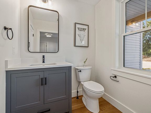 The Farmhouses at Founders Square is a beautiful townhome development located in idyllic Greenland NH. Built by custom builder, River Birch Builders, this home boasts over 2,000 sq.ft of living space, modern farmhouse charm, careful attention to detail, & a thoughtfully laid out floor plan. This end-unit includes 2 large bedrooms plus a separate office space/bonus room, 2.5 bathrooms, open concept kitchen & living space, a single car garage, full basement, a front porch, & back deck. Enter the home through the farmers porch lined with beautiful cedar columns. In the entryway you'll find shiplap detail with two coat closets and a half bath. Ahead is the open concept kitchen & dining area with views into the living room. The kitchen has a large kitchen island, pantry, choice of quartz or granite countertops, & a fully tiled backsplash. The living room is equipped with a gas fireplace, upgraded shiplap accent wall, & option for a built-in media center. White oak hardwood floors line the entire first floor & up to the second. On the second floor is a guest bedroom, full bath, office/bonus room, designated laundry room, & large primary bedroom. The primary bedroom has a substantial closet and beautifully tiled en-suite bath. Nearby Downtown Portsmouth & interstate 95. Within a 5 minute drive are multiple golf courses including Sagamore, Breakfast Hill, & Pease. Beautiful NH beaches are just a short drive away. Ready for occupancy! GPS Address: 410 Portsmouth Ave.