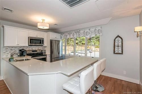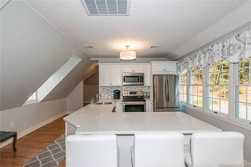 Views ! Best Location! Sophisticated style and a touch of elegance. Rooms are beautifully appointed. Spacious, fully furnished, one Bedroom, with a Living Room that opens up to a lovely deck, large dining room, and an oversized Laundry Room with a washer and dryer. All your utilities are included. Remodeled, eat-in kitchen has stainless appliances, quartz countertops and an oversized breakfast bar. Block away from Simsbury Town Center's shops, restaurants, services, library, walking/bike trail and the concert venue. Enjoy sitting out on your deck watching the sun and moon rises. Amazing apartment in an Amazing location. Simsbury is conveniently located halfway between Boston and New York City. An easy commute to all locations and Bradley International Airport.