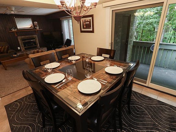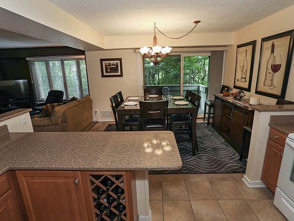 A must see! Move right into this beautiful, completely updated 2 bedroom, 2 bath condo at Seven Springs Resort. The floor plan is open and inviting with the fireplace and wooded view. You will love that natural gas for heating is included in the monthly HOA fee! The kitchen has been remodeled with new kitchen cabinets, gorgeous granite countertops, and appliances. The appliances are included. Both bathrooms have been updated with vanities, sinks, and countertops. Tile flooring, carpeting, and lighting have all been updated. There is a walk in closet in the master bedroom. There is also a ski closet next to the front door, perfect for ski season. Most home furnishings are included. The washer and dryer are also included. The HOA fee includes basic cable, gas for heating, security, shuttle bus, service, trash removal, snow removal, water and sewage, and use of the outdoor swimming pool. This condo is pre-inspected and move in ready!