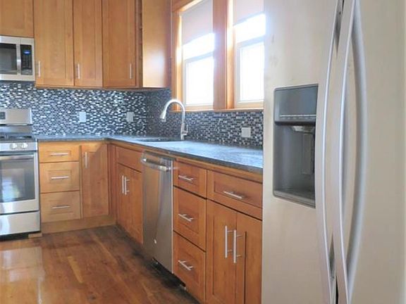 Must see to believe this gut renovation on 2nd floor of 2 family home. 4 bedrooms, 2 full bathrooms, deluxe eat in kitchen with granite counters, cherry cabinets, and stainless steel appliances, gigantic living room that is almost loft-like with panoramic windows, free laundry in basement. AND includes exclusive use if driveway that can fit up to 4 medium sized cars tandem. Great location near Somerville line. Walk to the new Ball Square Green Line train stop in only 10 minutes! Great unit (Reference #171959) Deposits are full broker fee, first month and one month security deposit.