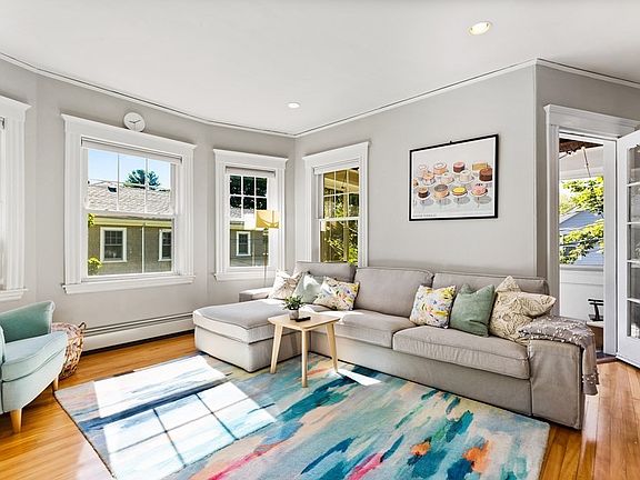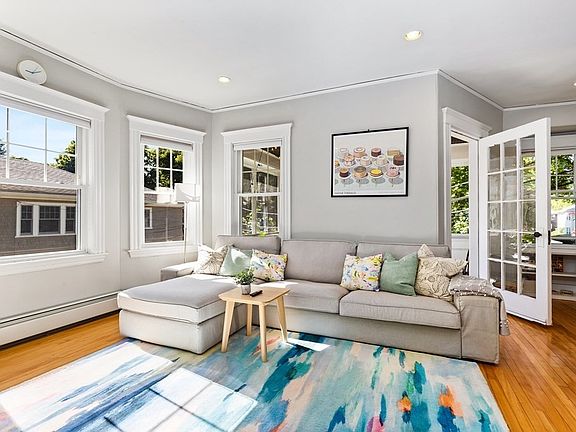 Location Location Location! In the heart of Newtonville! This beautiful two-level condominium offers 4 bedrooms and 2 full bathrooms, tucked away in a serene setting just off Washington Park in the sought-after Cabot School neighborhood. A private front entrance leads up to a bright living room with access to a screened-in porch, a spacious formal dining room with built-in, an updated eat-in-kitchen with stainless Bosch appliances, farmhouse sink and soapstone counters, access to a rear entryway with mud area and private balcony, an updated full bath, 2 bedrooms, and a laundry room. The top floor boasts 2 more spacious bedrooms and another full bath. Other amenities include a private patio, large shared backyard, 1 deeded garage parking spot, a private driveway with 2 more spots, and ample private basement storage. Minutes to Newtonville restaurants, shops, Commuter Rail, and buses, near Edmands Park and Bullough's Pond, with easy access to the Mass Pike, Boston, and Cambridge.