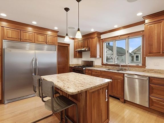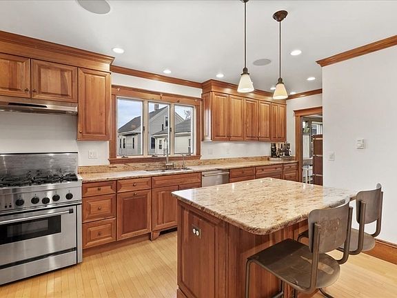 Enter through the private entrance into 1,800+ sq ft of pristine living space in highly desirable West Medford! Upper duplex floor plan is perfect for memorable entertaining with no shortage of space & is flooded with natural light! The welcoming living room with a fireplace flows into the spacious dining room, adorned with rich trim, new paint and hardwood floors throughout! Plentiful high end cabinetry, stone counters & center island blend seamlessly to create a chef's dream kitchen! Two large bedrooms, full bath, laundry and sunroom complete the first level as well as direct access to a common yard! Upper level showcases two additional bedrooms, a second full bath and an additional living space. Dream location for nature & outdoor lovers: next to Playstead Park, Lower Mystic Lake & the Fells Reservation and more! Shared driveway and the home is located down the street from the West Medford Train Station to make commuting a breeze. Truly a wonderful opportunity in today's market!