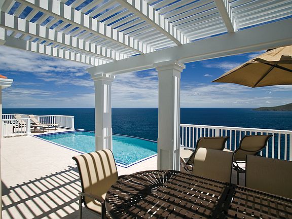Villa Jamie is currently a very successful short term rental property but is also the perfect family home or corporate retreat. Stunning waterfront location with beautiful pool overlooking the Atlantic, Hans Lollick, Peterborg Peninsula & down island to BVI and St John. Beautifully furnished & finished with four large beds/baths including in-laws quarters with full kitchen, media room & garage.