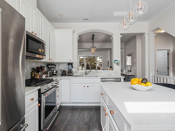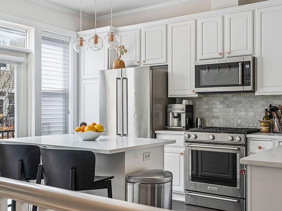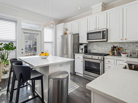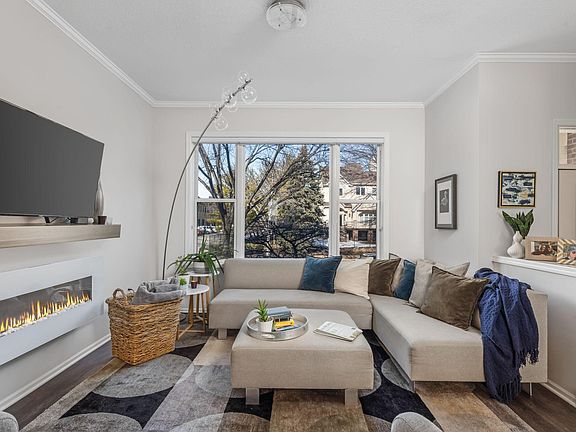 Gorgeous fully updated townhome steps to the Mississippi river & all the attractions of the North Loop - restaurants, shops, parks, & more. Open floor plan with natural light filtering through new window shades & updated flooring on all levels including dark oak & plush carpet. Welcoming front entry with large coat closet, as well as back entry on garage side. Bright & airy kitchen with white cabinets, marble backsplash, quartz countertops, & new stainless steel appliances, including a gas range. Spacious master bedroom with a fully updated ensuite bathroom including a double vanity, tiled shower with glassdoor, & an abundance of storage. Walk in primary custom closet. Generous sized second bedroom with large closet. Updated second upstairs bathroom with tub. Convenient laundry with new stackable washer & dryer units located just off the bedrooms. Powder room on main level - great for guests. Finished basement with three large storage closets & an additional bedroom / flex space.