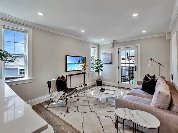 Ready for immediate occupancy! New Construction in 2018! 9R Trenton Unit 4 is an upper level unit with open concept corner floor plan with 3 Beds/2 Baths, 1150 sq ft of living area. DEEDED GARAGE PARKING included! Unit features modern finishes. Kitchen has Quartz peninsula, Bosch/GE SS appliances + shaker cabinetry. 3 Large bedrooms!. Tiled bathrooms with glass shower enclosures. Primary Bedroom has en suite bath. Plenty of closet space in both bedrooms and hallways. All units have hardwood + recessed lighting throughout. In Unit Laundry! Central AC/Heat. Ideal location steps from East Boston's Waterfront, Central Square + multiple public transportation hubs, including bus lines, Maverick + Airport T Stations. Grocery shopping is steps away. Walk to desirable East Boston waterfront bars/restaurants, parks, running/walking/bike paths. EASY TO SHOW!