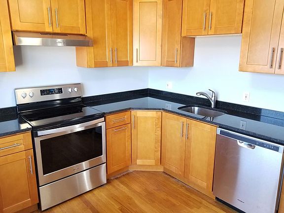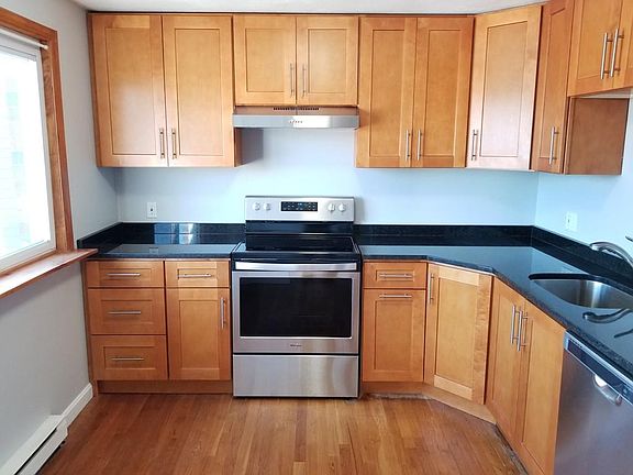 Available now, TOP FLOOR, bright and sunny 2 bedroom corner unit, over 800 sq. ft. of living space that features a completely renovated eat in kitchen with granite countertops, hardwood flooring, plenty of cabinet space, LED lighting and all STAINLESS STEEL appliances, stove, vent hood, refrigerator and dishwasher. Newly installed flooring in both bedrooms. Both bedrooms are spacious with large closets and LED ceiling light. Renovated bathroom features updated vanity, new lighting, tile flooring and tiled shower. There is a balcony off the living room, laundry in building, TWO parking spaces and additional guest parking. 10 minute walk to Bay State Commons, Roche Bros, restaurants and shopping. Conveniently close to major routes, Rt 30, Rt 9 (5 mins), Rt 495 (10 mins). No pets, no smoking, good credit and proof of income required. First month & security deposit, no listing broker fee.