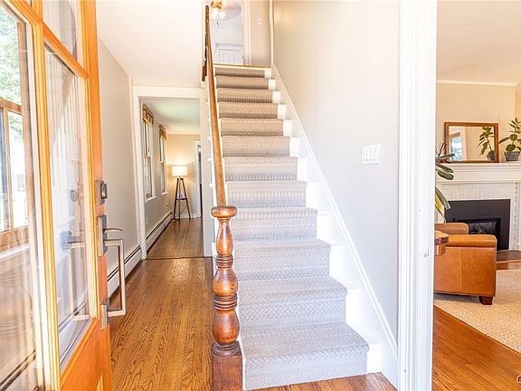 Charming colonial featuring 3 bedrooms and one and a half bathrooms, all within less than 5 minutes walking distance to the picturesque village of Skaneateles and Skaneateles Lake. The open-concept kitchen and dining room boasts stainless steel appliances, a center island with quartz countertops, and beautiful wood floors throughout. A cozy gas fireplace and new floor-to-ceiling high end Marvin windows enhance the inviting living room, creating the perfect space to relax or entertain. Detailed woodwork adds timeless charm, while the second-floor laundry and home office provide modern convenience. Outdoor living spaces include a fantastic front porch, back patio, partially fenced yard and oversized shed. This home perfectly combines traditional elegance with access to shopping, dining and community events within the village just a block away! Delayed showings: Sunday 12/15 at 9:00am.