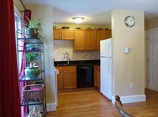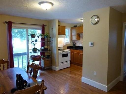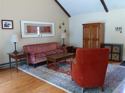 This is the biggest style at Acadia. Features include a large LR with cathedral ceiling with sliders to patio. There are lots of windows letting in great light. Two full baths, and a first floor BR as well as two more on the second floor. All 21 units are owner occupied. You will love the location across from the town forrest. FHA approved!
