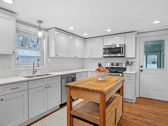 - Features: Flooring - Vinyl, Dining Area, Kitchen Island, Country Kitchen, Open Floorplan, Remodeled, Stainless Steel Appliances, Gas Stove, Lighting - Pendant