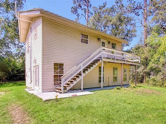 Welcome to your charming Madisonville retreat! This 2-story gem nestled on a quiet street exudes timeless character and peaceful living. Downstairs features an open living/dining area, kitchen, half bath and laundry with tile flooring throughout. Step upstairs to discover vaulted ceilings adorned with exposed wood beams and stunning pine floors in both bedrooms. Large walk around balcony, accessible from inside or out. This property sits on a generous half acre lot, providing ample privacy and tons of room for storage and other future plans. In need of a little TLC, but has so much potential! Flood zone C!