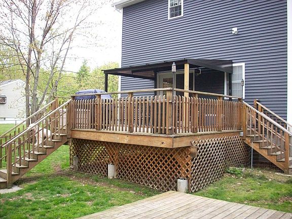 Total makeover! This Colonial was once a small Cape. The owner added out and up making this a beautiful home. Spacious, mint and move in home waiting for you! Year round comfort with 2 zone heating and air conditioning! Meticulous attention to detail and all high end finishes were used in the total renovation on this well placed property. Close to major routes yet nice private location and a 3/4 acre level lot. Hardwood and ceramic tile floors throughout. Large Master bedroom hosts Cathedral ceiling, custom recesses, walk in closet and huge master bathroom you'd expect to find in the better homes magazine! Living room with French door to 16 X 15 partially covered deck which is ideal for morning coffee or sipping your favorite adult beverage in the evening. Nice big level lot for future garage and/or pool. Pull down stairs for 15 X 12 attic storage.
