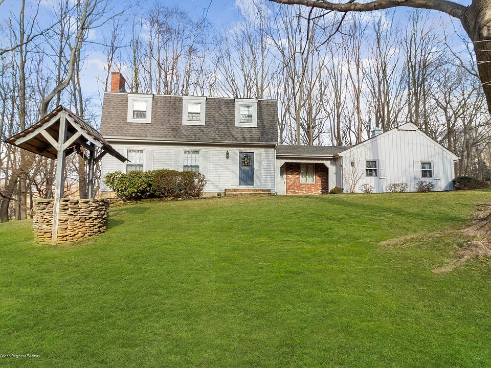This is a 3 bdrm 3.5 bath dutch colonial home in Holmdel located on 1.93 private acres on a quiet cul-de-sac. Spacious living room with woodburning fireplace connecting to dining room with large bay window. Eat-in kitchen with sliding door which leads to backyard with brick patio. Large walkout basement with woodburning fireplace, full bath & laundry. 2nd floor offers 3 bdrms & 2 full baths. Bring your decorating ideas and make this your home. Close to all major transportation, shopping & restaurants.