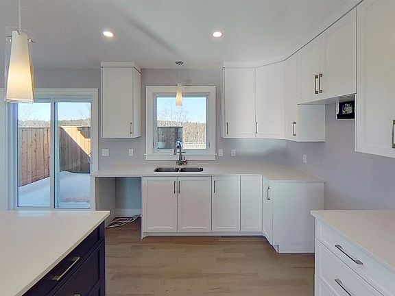 The split entry is full finished with 3 bedrooms and 3 full baths. With main floor kitchen, dining and living room area being bright and open concept. The kitchen has a Pantry and Island. The living room has large bright windows, large open stairs. Front entry is spacious and has entrance closet. The basement has a rec room, 3rd bedroom and 4 pc bath plus mechanical room. Home is electric heat with a mini split on main level for extra heat and AC in summer. 1900 sq ft finished. The upper level has 2 bedrooms and the Owners suite has walk-in closet and ensuite with custom shower.The main entrance has front deck and 12x10 deck off the kitchen area. Lower floor laundry room with tons of room for storage or ironing board. Attached garage 10x22 with high ceilings, great for upper storage. Located on Alpine Court this development is locate in Old Bedford and on a Cul De Sac. Only the necessary trees for construct have been cleared. Nice back yards. Call or email for plans.