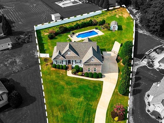 Explore your dream retreat in the heart of Wren Schools! Set on a large well landscaped .80-acre lot, this exceptional residence boasts a luxurious Aqua Blue 16x32 saltwater inground pool, . Immerse yourself in the tranquility of your private haven, complete with rebar enforced 8” concrete walls, an inviting concrete step entry, and captivating underwater lighting options. Dive in and let the worries of the day fade away as you enjoy a pool that's not only breathtaking but also low-maintenance, thanks to a saltwater system and cleaning robot. Step inside to experience the grandeur of this Dick Childs masterpiece. A seamless open floor plan welcomes you, accentuated by a soaring 16’ ceiling in the living room that evokes a sense of spaciousness. The master bedroom impresses with a 14’ ceiling, offering an airy escape. In the dining room, a stunning over 9’ tray ceiling adds an elegant touch to every meal. Real hardwood flooring adds warmth and sophistication to the space, while solid surface countertops grace the kitchen, combining functionality with finesse. The attention to detail continues with the expansive 27’ wide garage, providing ample space for vehicles, tools, and more. With its 15’ high ceiling, extended lift door, and even a welding outlet, this garage is a car enthusiast's dream. Envision the possibilities of installing a car lift or two, maximizing your space without compromise. The extended driveway and dedicated R.V. / Boat concrete pad ensure that parking is never a concern, making this home perfect for those with an adventurous spirit. Built on a hill, the house offers an abundance of crawl space, perfect for additional storage or customization. If that's not enough, a generous 16x12 shed with a double loft stands ready to accommodate your needs. And the ultimate relaxation? Your 10x24 screened back porch overlooking the pool, offering a serene spot to unwind and admire the beauty that surrounds you. The landscaping is meticulously curated, with a privacy fence embracing the property and vibrant landscape lighting illuminating the exterior beauty. You’ll love the floor-plan flexibility. All three bedrooms are on the main level. Upstairs, you’ll find a spacious bonus room, office, and a crafty workout nook that could double as a quiet reading room or study. With upgrades to spare, this home is ready to embrace new memories. Revel in a low maintenance pool with new pool equipment (this year), including a liner, control panel, salt cell, and booster pump. This Aqua-blue pool was built with rebar enforced 8” concrete walls and concrete steps that come with a lifetime warranty. From the solid/multi-color underwater lighting to the modern conveniences like irrigation and landscape lighting, every aspect of this property has been thoughtfully designed to provide you with the ultimate living experience. Indulge in luxury, comfort, and serenity – all within the desirable Wren Schools neighborhood. Welcome home to a world of possibilities.
