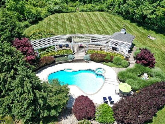 Custom Colonial on 3+ acres in desirable cul-de-sac neighborhood. Extraordinary outdoor entertaining area w mature professionally landscaped resort-style in-ground pool w multi-level patios, spa, pool house w kitchen and full bath. Extensive decorative moldings. 2-story foyer. Elegant formal dining room w bump out window. Large living room opens to conservatory sun room. Spacious kitchen w new granite counters, center island, cherry cabinetry, butler's pantry and breakfast room w sliders to patio. Cathedral ceiling family room w fireplace flanked by half moon topped windows. Primary bedroom suite w sitting area, 6 closets including 2 walk-ins and lavish bath w jetted tub and stall shower. All big bedrooms w en-suite full baths. Office. Finished basement w recreation room, wine cellar w custom racks and gym. Generator.