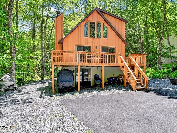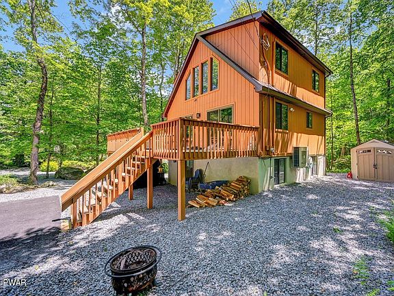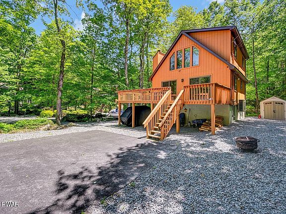 The perfect chalet in The Hideout, a four-season amenity filled community in The Northern Poconos. Located in the north section of the community on a quiet street with no thru-traffic. The home is positioned on the beautiful over sized, level lot to offer privacy. Paved driveway, new roof in 2020, 3 mini split units for A/C and heat. Laminate flooring, open floor plan, high ceilings, large loft that serves as a third sleeping area, finished lower level with open recreation room and storage. Relax on the front deck!