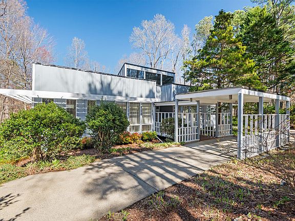 Beautiful contemporary home in Croasdaile! Circular drive, carport and 2 car garage. Spacious screen porch and deck overlook large, private lot! Updated Kitchen is great for entertaining. Connects to Family Room for beautiful views and a nice flow. Lovely Dining Room and Den. First level Primary Bedroom plus 2 additional Bedrooms. Lower level features three separate family room/hobby areas, plus a full bath. Lots of natural light and sliding doors to exterior.