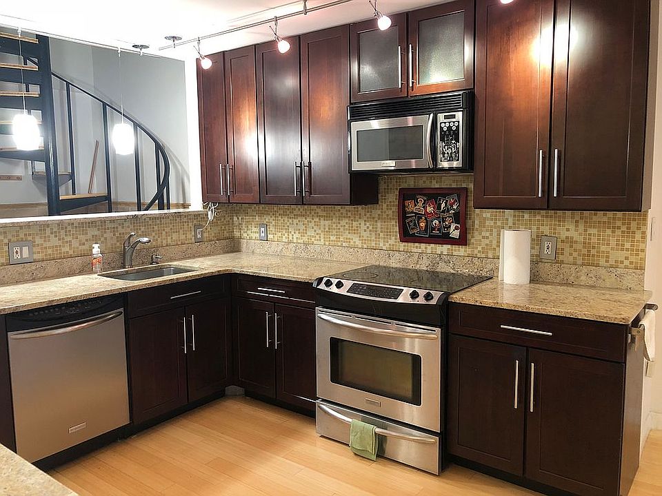 What a great location - RARE opportunity to get into this neighborhood! Sunny modern loft style 1 bed/1 bath condo with a spacious open floor plan. Updated granite/SS kitchen with a brand new fridge. Beautiful bamboo flooring throughout and cathedral ceiling LR. Relax in your soothing spa-like bathroom with Jacuzzi tub and body jet shower system. Danze and Kohler fixtures, 200 amp electrical service with custom Tech brand lighting throughout and amazing chandelier spanning both floors. Unbelievable amounts of built-in storage and washer/dryer in unit. You are right in the middle of it all - fantastic restaurants, nightlife and shopping all moments away. Easy commute throughout Boston and surrounding areas - public transportation and easy access to both 93 and 90W highway. FHA Approved. No broker fee. Owner pays for sewer, tenant responsible for electricity.