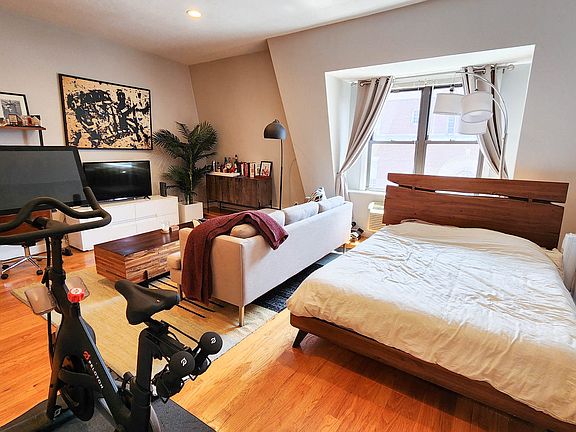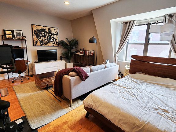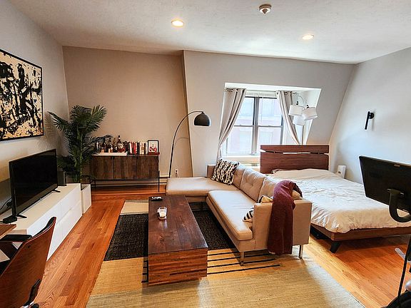 Available 4/1 or 5/1 ONLY. Huge 530 SqFt studio on beautiful Appleton Street, in the heart of the best of the South End, right near Back Bay! a 12 minute walk to Tufts School of Medicine, convenient to BMC. Located in a professionally managed immaculate elevator condo building. A/C and in-unit laundry. Filled with sunlight, this 4th floor front-facing home has 9+ foot ceilings, beautiful gleaming hardwood floors, recessed lighting. Get in touch to ask for link to video. The recently renovated kitchen is complete with lots of granite counter space, and stainless appliances, including dishwasher, gas stove with oven, microwave, full fridge. Lots of cabinet space too! Plenty of room for sleeping, living, and desk area (see photos). Huge built-out walk-in closet. Just steps to the South End's best restaurants! A short walk to Back Bay station and Copley. Easy highway access. You deserve to live in a nice unit in a beautiful neighborhood, so book your appointment today! Separate storage unit available for $50/mo. Sorry, we are not considering undergraduate students or pets. Zillow applications not offered. In-person showings only. Renter responsible for heat, A/C, hot water, electric, cable, internet, payable monthly. First, security, 1 month brokerage fee, key deposit of $50 due up front. We are looking for a responsible person who will respect the property, with good credit, *appropriate income*, and references. Lease through May 30, June 30 or Aug 31 2026. Please no smoking, no undergrads, no pets. There is no administrative or application fee above and beyond the brokerage fee.