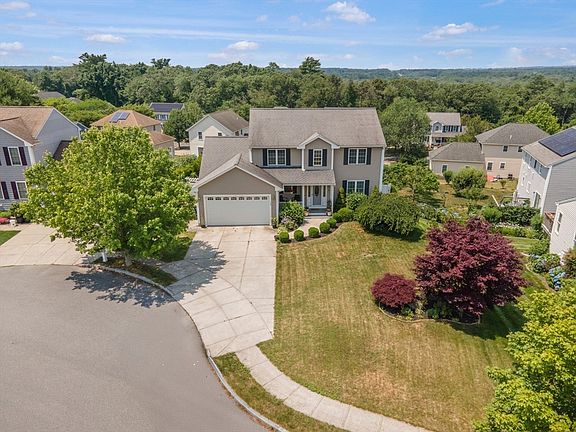Nestled in a cul-de-sac this property has so much to offer, whether it's the inground pool in the back yard, the beautiful porch in the front, or everything in between. Equipped with a fully finished basement that includes a bathroom, two separate rooms, a large lounging area with a wet bar that leads to the pool out back, plus extra storage, there is so much to enjoy before even hitting the main floor! Main floor offers an open concept kitchen leading into the living room to it's left and a separate formal dining room to it's right. Attached to the dining room is a separate area that can be used in a variety of ways. Leading out from the living room through the sliders you'll find a deck that has an amazing view of the back yard. Main level has a convenient half bath located just before the entry to the 2 car garage/ just after the stairs to the second floor. On floor #2 there are three bedrooms with two full baths. The main bedroom has it all, walk in closet AND a full private bath!