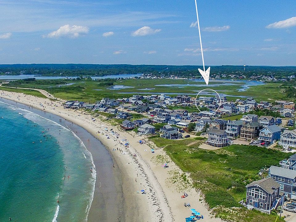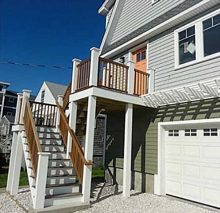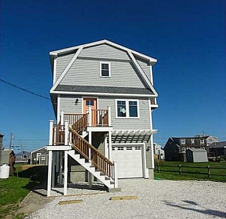 New. Water view! Walk to beach. Gorgeous interior: 3 bed, 2.5 bath summer beach house or year round. Bamboo floors throughout, granite kit, master suite, 2 decks, integral garage & storage. Walk to 2 private beaches & Oyster Bar! Must see!