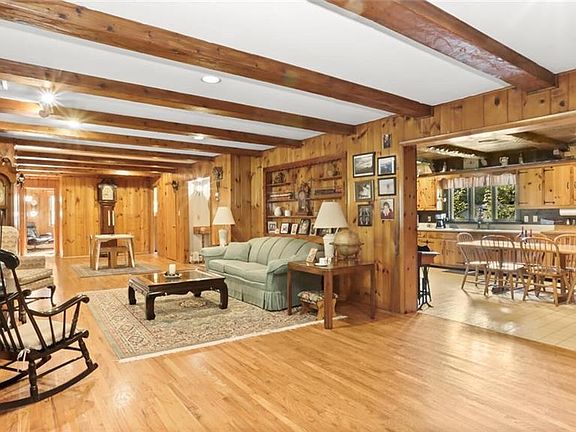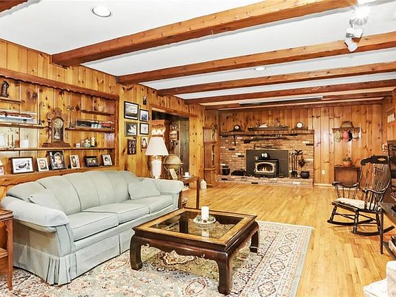 Originally built in 1965, this beautiful Ranch style home offers four bedrooms with one full and two half bathrooms located on a serene setting in a quiet neighborhood in New Fairfield, CT. The home is a very unique custom home and has been updated over the years with custom handmade woodworking to include hand-hewn beams, walls, cabinets and shelves, a large Pub room on the lower level with custom built-in bar and workshop area. The exterior of the home offers cedar clapboard siding with lovely a front porch with paver walkway, patio, stone walls and steps, central air conditioning, indirect hot water heater, level yard, one car garage and generator hookup. The home and property are conveniently located in quiet neighborhood in New Fairfield, Connecticut with close access to I-684, I-84, railroad station, mall, local shopping.