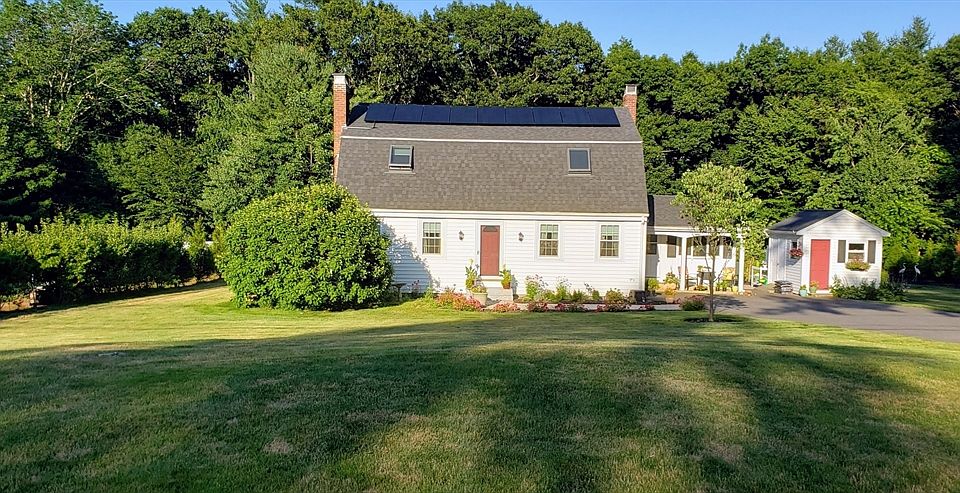Well maintained home on small cul-de-sac in historic North Easton Village, beautiful yard, perennial flowers and much more. Home abuts nature trails to conservation areas.Hardwood floors in all rooms except kitchen, sunroom and baths (ceramic tile). Four bedrooms, 2 renovated full baths, fireplaced living room (chimneys restored, flue cleaned 2022), eat-in kitchen, 4-season sunroom with sliders to a deck (20'x16',Timbertech).Fully owned, high-efficiency solar panels rated 10.0 kWp (2022 10-year warranty x-fers to new owner). Architectural asphalt shingle roof (2016), Pella windows(Adv Low-E,2014), kitchen renovated 2009, appliances(All Energy Star) less than 5 years old. 9 zone sprinkler system. Natural gas powers 22 Kw whole-house generator, boiler (2014) and GE Café gas range. Mitsubishi mini splits (7 rooms, 2020), two custom-built sheds and fenced area 40' X 30' wired for pool pump. Open House 5/4 & 5/5, 11:30-1:30