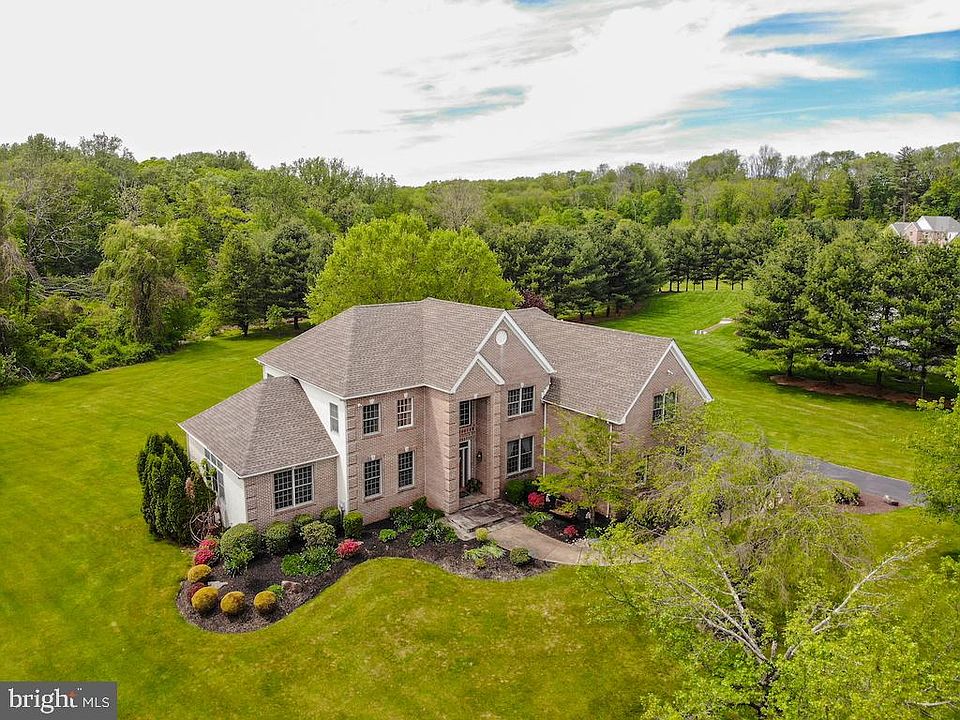 Spectacular 2.5 acre property on a quiet cul-de-sac overlooking beautiful open space in sought after Council Rock School District. This stunning brick front home, elegantly landscaped, welcomes you into a grand 2-story foyer leading to an open & welcoming floor plan your family will love. Main level is complete w a sunny living / dining room combination, a huge sunroom addition w cathedral~ceilings, work from home in the full-size office or turn this into a 1st floor bedroom since the~powder room is adjacent. Retreat to the 2-story family room w floor to ceiling windows, beautiful fireplace, & the kitchen w breakfast room. Sliding glass doors in this room allow for easy entertainment to a large rear deck complete w a private jacuzzi. Gourmet kitchen w massive pantry for storing everything, center island, granite counters.~3-car attached garage. The 2nd floor offers a grand master suite w enormous closets and wonderful natural light. 3 additional bedrooms, one a princess suite w its own full bath & a laundry room complete upstairs. Fully finished walkout basement offers a second kitchen & fireplace complete w a great bar and 2nd laundry room along w loads of storage space. Incredible location, great schools, wonderful curb appeal, this home has it all and is waiting for you.