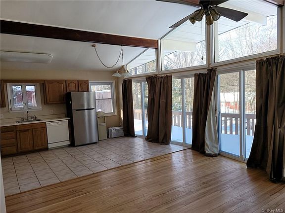 Fully availableNicely set chalet style home located in Davos community. Vaulted ceilings, with open concept in living and kitchen area. Hardwood floors through out the upper level. Lots of natural light with sliders leading out to wrap around deck. Upper level features 3 bedrooms including main suite, along with two additional bedrooms and a second full bathroom. Lower level is walkout and finished with newer flooring, and does features a bonus sleeping area along with a 3rd full bathroom. Would make a great in law suite or home office. Laundry hookups in lower level also. Large paved horseshoe driveway, lot is partially wooded and has a private feel. Town water, individual septic. Close to 17 for commuters purpose, along with close to local attractions, bethel woods, ski hill, casino, water park and more.
