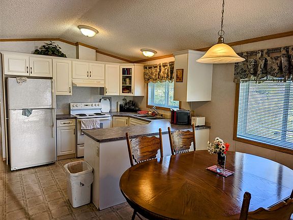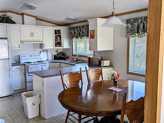 This 2003 single wide home boasts 2 bedrooms, 2 bathrooms, an inviting living room with a gas fireplace, and a bright kitchen.