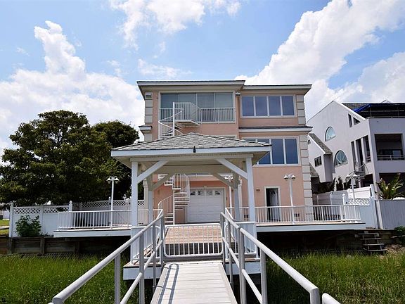 Custom built 5,500 sq. ft. waterfront home with easy & quick access to the Ocean. There is a min. of 7 feet of water at low-tide & the location is fully sheltered from weather allowing for year around in-water dockage. 100 amp electrical service, will power all of your boat(s) and friend's boats! A huge, heated, 1st floor garage has enough room for 3-4 cars as well as all of your boating/fishing gear. The owner's of this custom home had it designed and built new exclusively for them by the renowned architect, Arthur Rutenberg. The 2nd floor boasts an open & cathedral floor plan with a gourmet kitchen, dining area, and spacious living area. With 5 bedrooms, there is plenty of room for family & friends. An elevator services all levels of this home and there are 2 laundry rooms for added convenience.