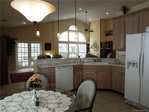 Beautiful Martinique model with 3 bedrooms, 2 full baths, Sun Room Very Open concept floor plan with Cathedral Ceilings, lots or recessed lights, a fabulous wall of windows to enjoy the park like setting in the back yard !! Highlights include: Recessed lighting in master bed room, great room, kitchen, dining room, & sun room Matching ceiling chandeliers in great room, kitchen, dining room, and foyer. Ceiling fans in master bed room, bedroom 2, bedroom 3, great room, & sun room! Tile floors except in bedrooms, there is carpeting. Kitchen is very open and large with recessed lights, 42" cabinets, white appliances, under cabinets lights. The Family room is a highlight of the home with the high cathedral ceiling, wall of windows, gas fireplace with built ins surrounding it, Sun Room with disappearing sliding doors and cathedral ceiling with fan, slider to outside patio. Do not miss the park like setting of the back yard!! Electric Awning with a smart drop for even more shade, the permanent