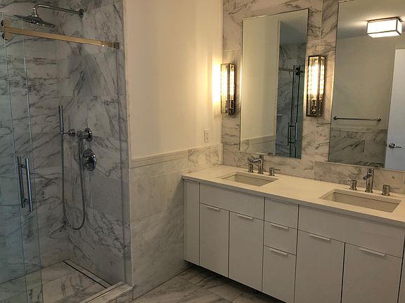 Beautiful 3 year old building in bustling and up and coming neighborhood on the exclusive West New York/Weehawken/Port Imperial Waterfront Introducing 9 On the Hudson, a beautiful new luxury condominium featuring 40,092 sqft of 5 star amenities which are nothing short of spectacular! 24 hour concierge, 2-story cutting edge fitness center, group fitness classes, sauna, infinity edge pool and hot tub with awe-inspiring views of NYC and the Hudson River. Golf simulator, child's play room, pet spa, rooftop lounge with multiple fire pits, BBQ islands, and a residents lounge that will take your breath away. This brand new 2 bed / 2 bath home boasts 1420 Sq ft of wall-to-wall hardwood flooring. Equipped with Quartz counter-tops, Marble Bathrooms, a Bosch appliance package with a magnificent Thermador refrigerator AND MORE. Top it all off with IN-UNIT Washer/Dryer, Gas, and Parking all included in the rent!! A must see.