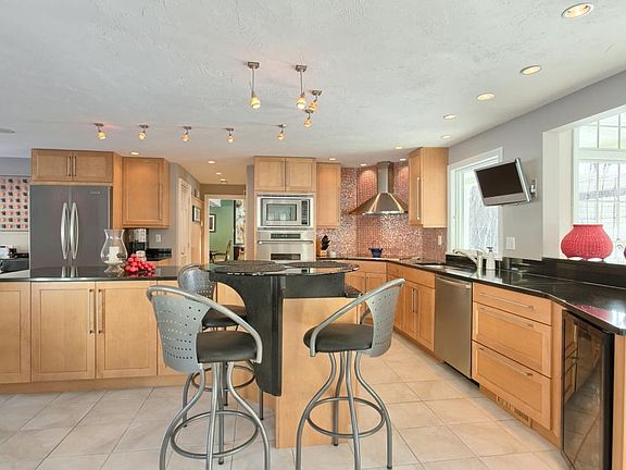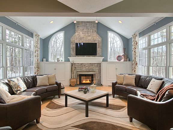 Attention to detail and intelligent design shine through in this renovated colonial. With no room left untouched, this colonial was transformed into a homeowner's dream with an open floor plan and great room with walls of windows, gas fireplace and floor to ceiling stone fireplace. Ideal for entertaining. Or find a quiet spot for reading in the sunroom and appreciate the beautifully landscaped yard, in-ground pool and nature that surrounds you. The kitchen features granite counters and an island with raised glass table at one end. Enjoy cooking with your Wolf stove, oven and warming draw combination and wine cooler. Retreat to the master bedroom with vaulted ceiling, walk-in closet and master bath with a 6x6 two person shower with tile walls and glass surround. Spend time in the backyard on the blue stone patio overhang offering ceiling fans, recessed lighting, and outdoor speakers. Welcome home.
