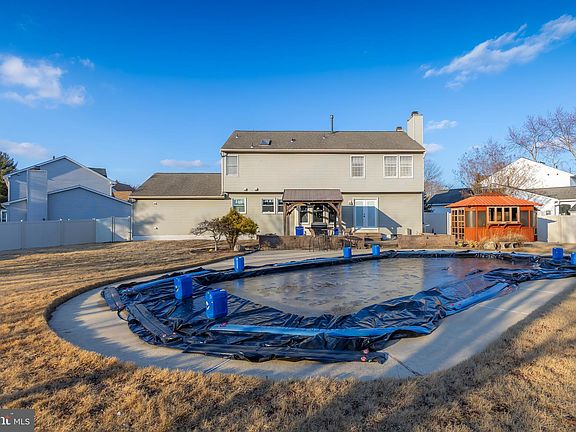 Welcome to 9 Bainbridge Court, an exceptional residence nestled in the sought-after Stonebridge Run neighborhood of Gloucester Township. This meticulously maintained 4-bedroom, 3.5-bath home seamlessly blends elegant formal spaces with comfortable family living. Step through the inviting covered front porch into a gracious foyer, where gleaming hardwood floors and refined crown molding set the tone for the thoughtful design throughout. The formal living room, anchored by a cozy wood-burning fireplace, offers a serene retreat for quiet moments, while the formal dining room provides a sophisticated setting for memorable gatherings. The heart of this home is its stunning modern kitchen, featuring granite countertops, crisp shaker-style cabinetry, and premium stainless steel appliances. A generous pantry adds functionality, while the open-concept design flows effortlessly into the breakfast area and family room – creating the perfect space for daily living and entertaining. The main floor also has a convenient powder room. Upstairs, the primary suite is a true sanctuary, boasting a dramatic vaulted ceiling, dual walk-in closets, and a luxurious en-suite bathroom complete with a soaking tub, double vanity, and separate shower. Three additional spacious bedrooms share the upper level along with a thoughtfully designed laundry room with ample cabinet space and a dedicated folding area. The fully finished basement extends the living space, offering endless possibilities, including a full bathroom and abundant storage. The gorgeous backyard showcases a paver patio with pergola, grilling area, enclosed hot tub, and an in-ground pool (with 2 years young liner) – creating the ultimate outdoor entertainment space. Additional features include a spacious two-car garage, main floor powder room, and French doors leading to the backyard oasis. This impeccably maintained home offers the perfect blend of luxury and comfort. Don't miss this opportunity to make this exceptional property yours. Schedule your private tour of this one TODAY!