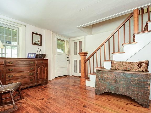 Antique Cape Cod includes 3 bedrooms, 2 full baths, master walk-in closet (was former maid's quarters), sunroom, storage galore, original wide board pine floors, solid Chestnut framing, Cedar shingles exterior. One of Princeton's historic homes, its wood stove, wrap-around front porch, outdoor patio, stonewall entrances, flowering trees and wooded trails give this unique property an English country cottage ambiance. The 3.77 acre residential/agricultural-zoned property abuts conservation land, is suitable as a small farm with capacious 2-story detached Barn (including 2 horse stalls, chicken coop, 2nd floor hay loft/game room), fenced yard, open fields, fruit and nut trees, vegetable garden, swimmable pond. Award-winning K-8 school w/STEAM program. Updated propane furnace, windows, hot water tank, well pump, range, and other quality upgrades, make this an exceptional buy. Sold as is. Experience your own private oasis situated near commuter train to Boston and Wachusett ski mountain