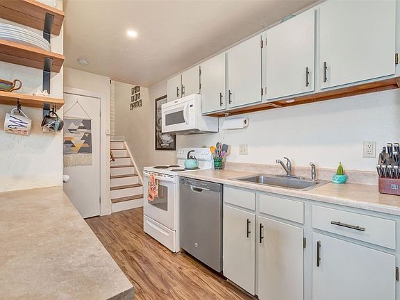 Check out this affordable and upgraded 2 bedroom, 1 bath Whistler Village Townhome located near the Steamboat Ski Resort with lots of thoughtful upgrades and an extensive wood deck. The main level has new luxury vinyl plank flooring, new natural-gas fireplace stove with mantel, reconfigured kitchen with ample pantry storage, painted cabinets with new hardware. On the upper level, you’ll find a remodeled bathroom with dual sinks, built-in towel nook, a cleverly-designed built-in storage area over the stairwell, newly installed closet systems in both bedrooms, and a new stackable washer and dryer. NEW WINDOWS throughout, upgraded recessed lighting in kitchen and upper level hallway and newer window blinds. This townhome has a warm and inviting flow and will make a wonderful primary home or vacation getaway. The complex is in a prime location near Whistler Park, the free bus stop, and the Yampa River Core Trail, putting you minutes away from world-class skiing and the Yampa River. The vibrant and welcoming community offers a large swimming pool and deck area, two hot tubs and club house. Whistler Village Townhomes has a pet-friendly policy for both owners and tenants allowing for 2 dogs. HOA dues cover internet, cable, trash, water/sewer, building insurance and common area/common element repairs and replacements. Set up a showing to see this thoughtfully upgraded townhome.